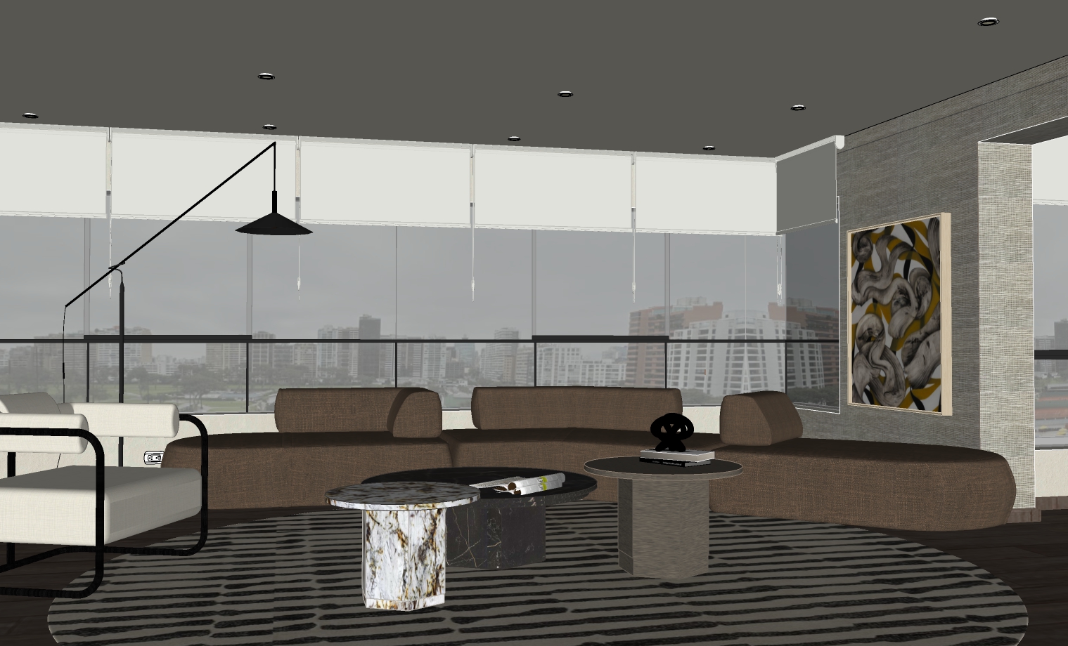 Desarrollamos la propuesta de diseño en 3D, lo que nos permitirá ver la distribución y el resultado de la propuesta con los materiales, texturas, colores, muebles, etc.